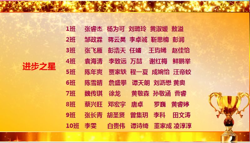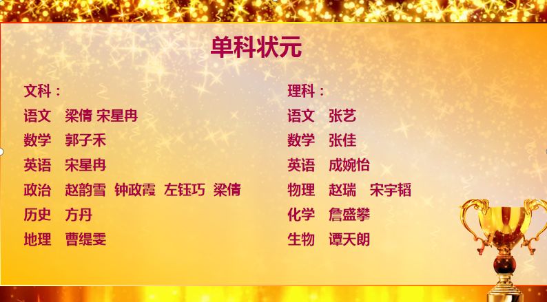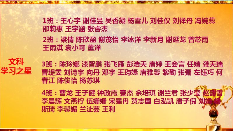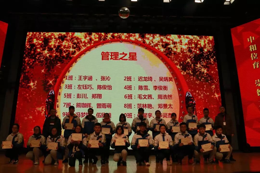 经过科学复习、激烈鏖战,高2016级全体师生在成都市一诊考试中取得了辉煌成绩,赢得了开门红。为此,年级对20名管理之星、50名进步之星、17名单科状元、150名学习之星、5名拔尖生进行了隆重表彰。