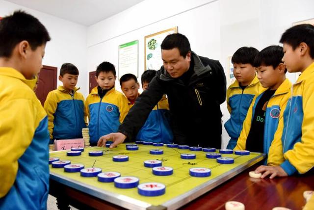 1月22日,南和县新区小学学生在老师指导下学习象棋。