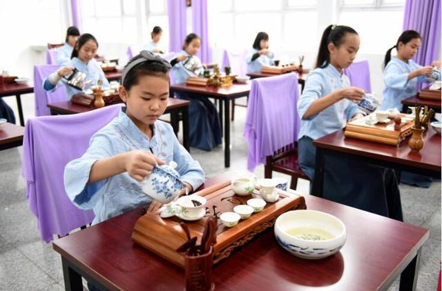 1月22日,南和县新区小学学生在参加茶艺特色班。