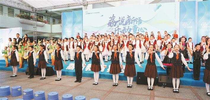 2月18日,荔园教育集团成立仪式上,学生们高唱校歌。