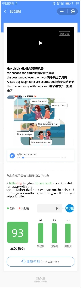 特别是语音测评功能特别适合语言类的课程作业布置,课程自带的AI测评可以帮助老师自动化的对学员的语音类作业进行纠音评分,解决语言学习类内容过去只能依赖老师听后进行主观评估,导致成本高,效率难以保证的问题。可以支持中英文单词、句子、段落等各种模式,并提供以发音准确度、流利度、完整度、重音准确度为基准的全方位打分机制,帮助老师自动评分。