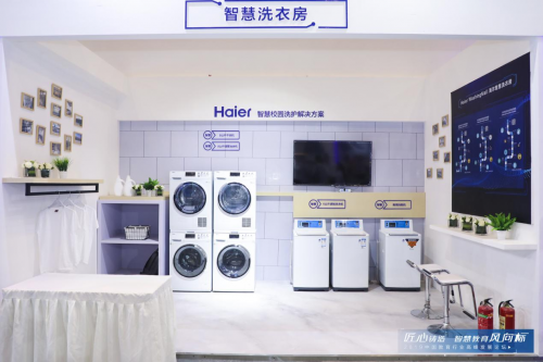 其中针对学生生活服务,海尔在现场展示了行业首创的共享租赁平台“海寓生活”,其打通了家电、安防等全链条设备资源,以及银行、基金等金融资源,通过软硬互联、金融赋能和运营增值,建立起全球智慧教育生态。同时,海尔具备成套产品、成套方案、成套展示、成套人员、成套服务的5大落地能力,提供从方案体验、交接、装配全流程一站式服务,省去校方多余的时间、精力及服务成本投入。