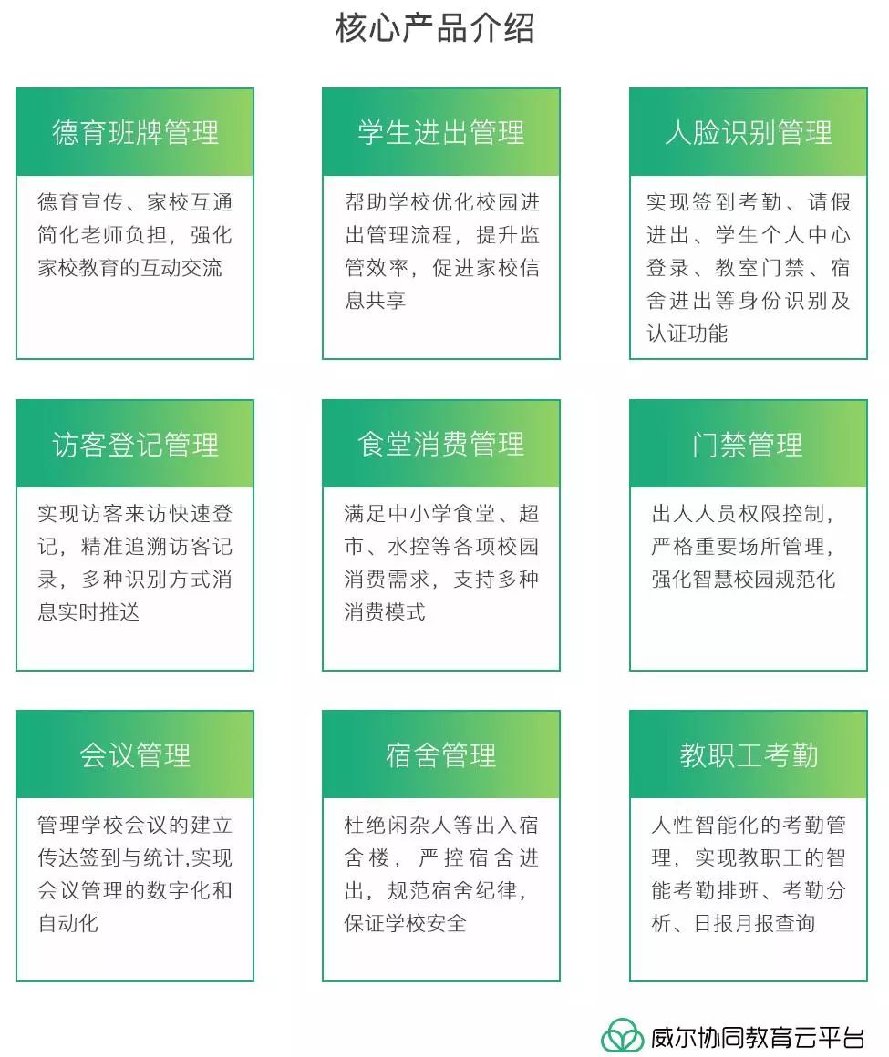 威尔深入研究学校管理的各种实际场景,推出多种应用产品和解决方案,优化学校管理流程,提高学校运营效率。