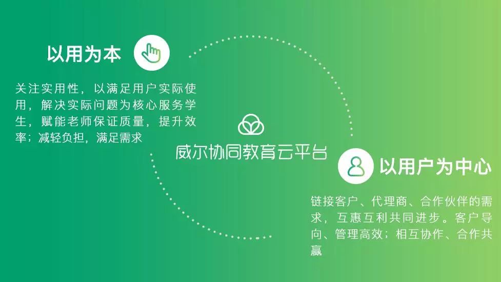 威尔产品赋能老师,服务学生,深入一线用户实际使用场景,为学生和老师解决实际困难,在实践和应用中打磨产品,以教育信息化促进教育现代化,真正做到以用为本。