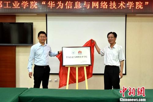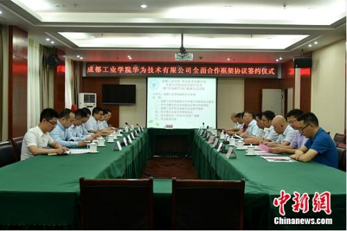 中新网7月5日电 近日,成都工业学院与华为技术有限公司全面合作框架协议签字仪式暨“华为信息与通信技术学院”揭牌仪式在成都工业学院举行。
