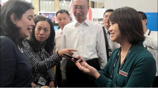 科大讯飞消费者端爆款产品讯飞翻译机甫一亮相便受到热烈欢迎。哥伦比亚通信部部长Sylvla Constain和中国工信部王新哲总经济师,中国驻哥伦比亚参赞一起视察讯飞展区并体验了讯飞翻译机,工作人员使用翻译机向哥方领导问好,Sylvla Constain听到翻译后,惊喜道:“It’s so good!”讯飞翻译机准确快速地翻译能力博得了中哥双方领导的一致称赞。