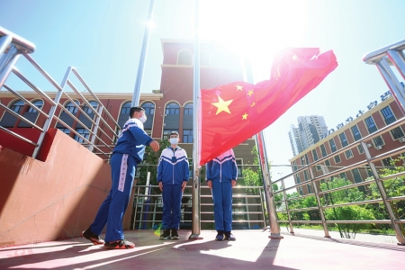 9时,初一、初二各班举行“开学第一课”主题班会,对学生展开心理疏导和爱国主义教育。10时,全校师生在操场集合,举行了新学期首次升旗仪式。同时,校方指导同学们在疫情时期增强自我防护意识,做好个人防护,让同学们将医护工作者“逆行而上”的精神用到学习中去。