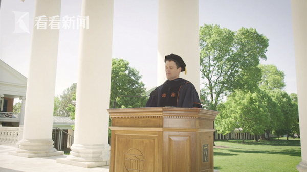 当天,位于弗吉尼亚州夏洛茨维尔的弗吉尼亚大学举办了一场特殊的“云毕业典礼”,校长吉姆·瑞安(Jim Ryan)穿着校长服在草坪上发表毕业贺词,但校园内却空空如也,一个学生也没有。