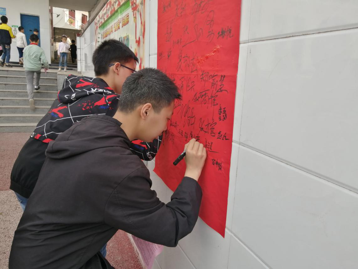 活动第三步,全校师生举行“小手牵大手”拒毒签名活动,同学们在老师的带领下纷纷庄重地写下了自己的名字,并要求此次活动结束后回家要向家长宣传禁毒知识,要告诉家长远离毒品、珍爱生命。