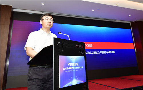 江西省教育考试院院长兼江西省教育管理信息中心主任徐峰博士讲话 江西省教育考试院院长兼江西省教育管理信息中心主任徐峰博士表示,疫情期间信息化发挥重要作用,而江西省教育信息化已经做到全国领先,成功实现了全省700万学生同上一堂课,1000万学生健康在线监控,保障疫情下的教学安全。徐峰博士进一步指出,教育信息化需要从四个方向发力,包括业务上云、数据处理、信息安全以及信息技术与教学融合。 中国电信三千兆网络和天翼云VR推动VR产业生态繁荣