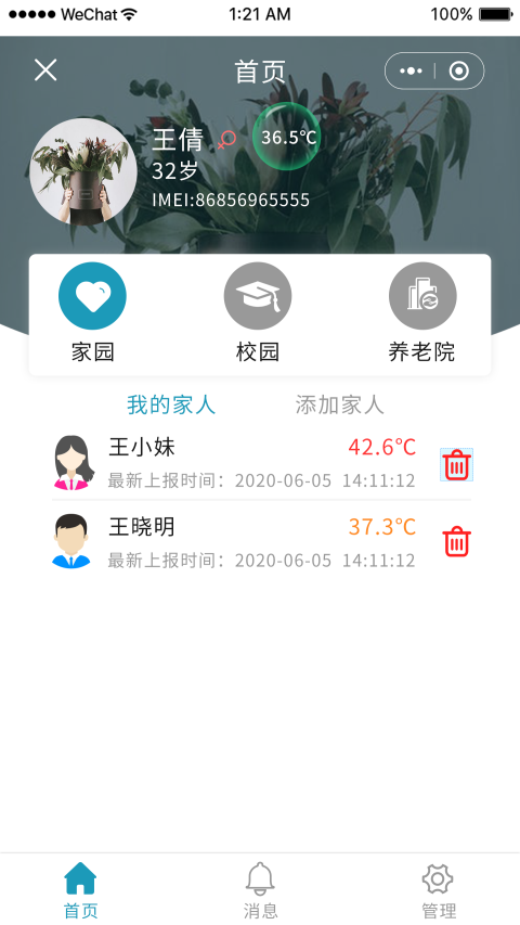 校方、老师以及家长可以通过APP、小程序等第一时间了解使用者的健康状况,不仅仅有体温数据,同时还可监测佩戴者的心率、血压等状况,其中的SOS一键呼救功能更是紧急情况下及时联系监管人员的最优选择。