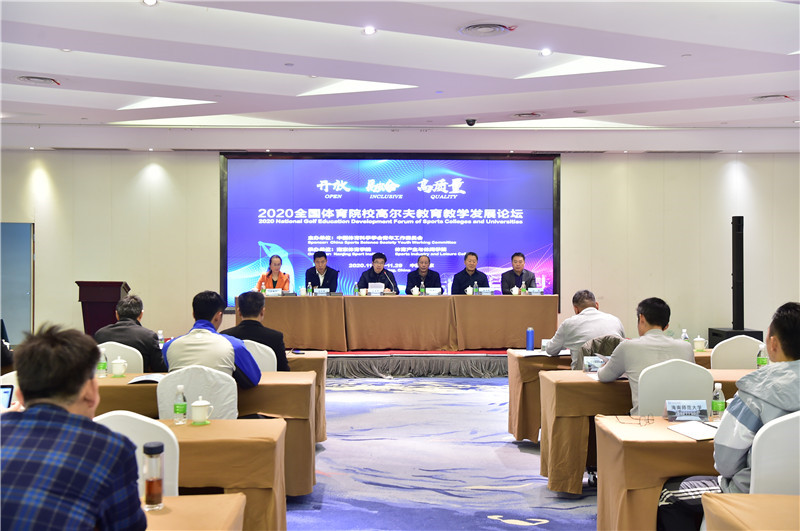 国内10家体育院校、11家综合性大学的高尔夫知名专家、教授20余人,高尔夫协会、高尔夫球场及相关企业主管及国内综合类院校近百名代表参与本次论坛。论坛通过举办主题报告和专题研讨,围绕高尔夫人才培养、一流课程建设、青少年高尔夫发展等主题交流思想、分享经验。与会专家一致认为2020年是新时代高等院校加速一流本科专业建设之年,也是国内高尔夫教育提优增质、改革创新之年。高等教育既为高尔夫运动发展培养了主力军,也拓展了高尔夫运动的文化维度和发展空间,新时代的高尔夫教育步入了发展“新赛道”。