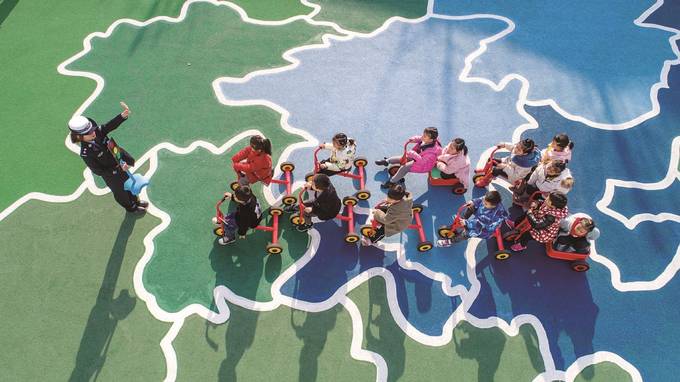 在“全国交通安全日”来临之际,海安市公安局交警大队组织民警深入各学校开展系列宣传活动。图为昨日,民警在海安市七星湖幼儿园向孩子们宣传交通安全知识。来源:新华日报 翟慧勇摄 视觉江苏网供图