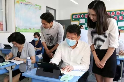 今年9月8日,蚌埠召开全市智慧教育推进会,市里对这次会议极为重视,除了市长王诚参加,还有市委副书记曹哨兵等其他领导到会。领导们除了一起商议如何加快推进工作外,还来到高新教育集团实验中学、第一实验学校中山校区、蚌埠二中、第二实验小学蓝天路校区,在模拟课堂当了一回“学生”。市长王诚像普通学生一样,拿起课本、平板、实地感受了一把智慧课堂的魅力。 “雄安新区”来观摩了 蚌埠的智慧学校建设吸引了全国教育界的极大关注,南来北往的参观者到这座横跨中国南北分界线的城市,一取“真经”,其中,就包括了“雄安新区”的来访者。