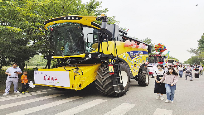 当天上午,师生们早早地聚集在该校工科实训基地,15辆经过各学院创意装扮的高端农机装备列阵待发。作为15辆机车的驾驶员之一,该校工学院谭鹤群教授说:“前两年我因为没有拖拉机驾照,没能为同学们驾驶机车送行,觉得特别遗憾。去年,我专门去考了拖拉机驾驶证,今年终于‘竞选’上了。以这种方式送别毕业生,不仅展示了现代农业风采,也是以特别的方式激励学子们逐梦远行。”