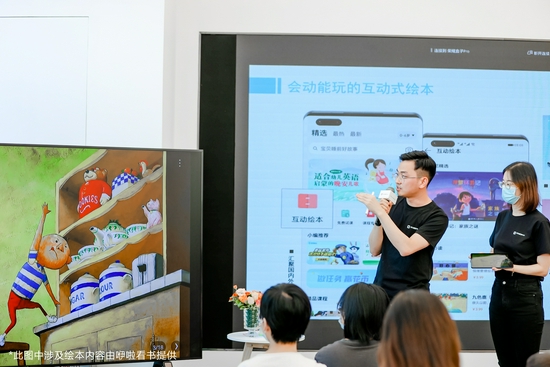 今年3月,华为教育中心与儿童交互式动画书阅读平台咿啦看书合作,引入并上线后者的互动绘本课程。结合华为手机、平板等硬件设备,孩子可以获得交互式的绘本阅读体验,而且互动绘本相比普通纸质绘本,具有“身临其境、眼耳同步”等优势,让孩子边学边玩、寓教于乐。