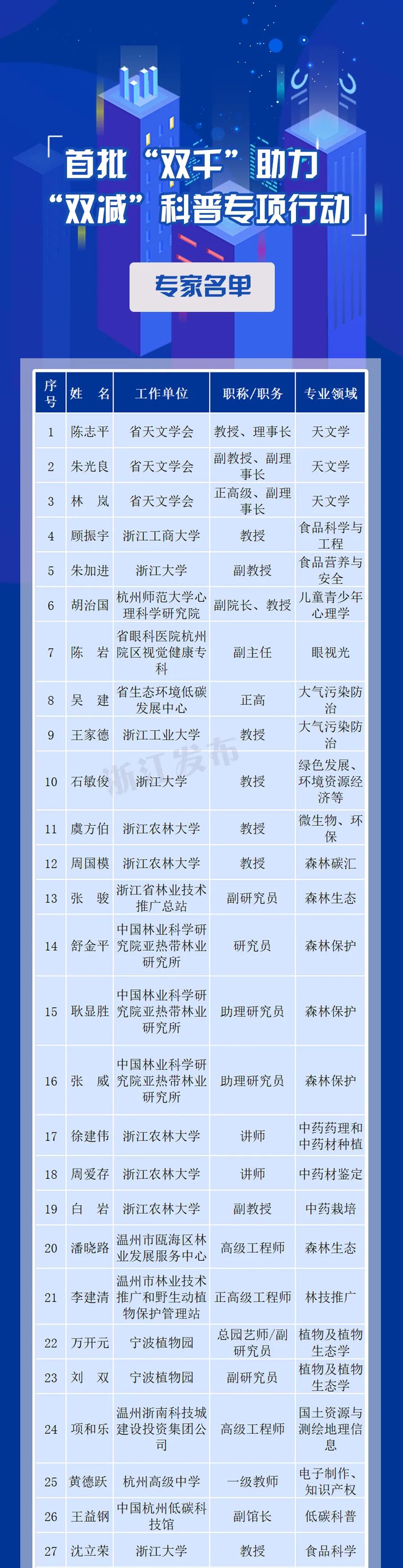 教育“双减”政策落地,如何丰富孩子们的课后时光?近日,浙江正式启动“双千”助力“双减”科普专项行动,并公布了首批“双千”助力“双减”科普专项行动133名专家和120家教育基地名单。