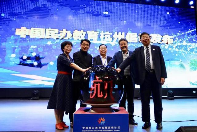 2019年4月21日上午,首届中国民办教育高峰论坛移师西施故里诸暨,在本次论坛的主办单位之一海亮教育管理集团诸暨海亮教育园举行民办教育名校长分享会,作为首届中国民办教育高峰论坛的最重要成果之一,中国民办教育发展“杭州倡议”在海亮教育园隆重发布,该倡议主题为“新法、新政、新发展”。来自全国各地的300多名民办教育研究者、管理者和工作者见证了这一激动人心的时刻。