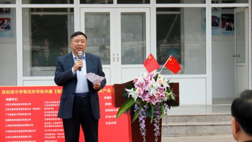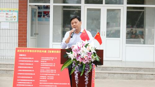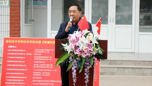 仪式结束后,西柏坡中学校长高英杰作为受捐学校代表发言,他首先感谢大家的关怀,本次捐赠活动将为西柏坡教育发展插上翅膀,西柏坡是革命老区,离教育现代化有距离,现在脱贫攻坚战的核心阶段,本次捐赠意义非凡,接下来,他将进一步与专家,企业深入沟通交流,促进教育装备的落地,促进本地区本校的教育信息化发展。