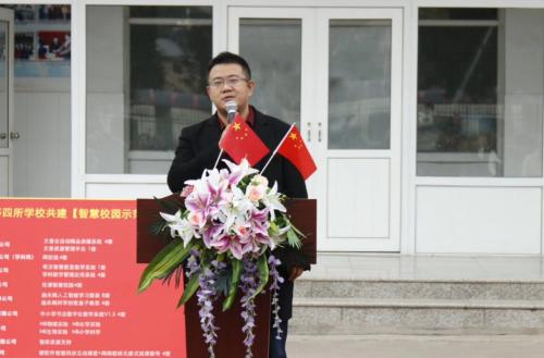 其次由河北省教育技术装备中心主任郭晋保致辞,首先对各位领导和各位企业家的到来表示热烈的欢迎和衷心的感谢。郭晋保主任道出此次活动与以往捐赠活动的区别,本次捐赠活动是作为一个共建项目而进行长期的合作,通过三年规划、设计与实施使捐助活动真正成为产教学研、深度融合的长效机制。希望企业家和教育专家借助此次平台与学校的师生共同建设智慧校园,推动推动西柏坡乃至石家庄的装备水平的发展。