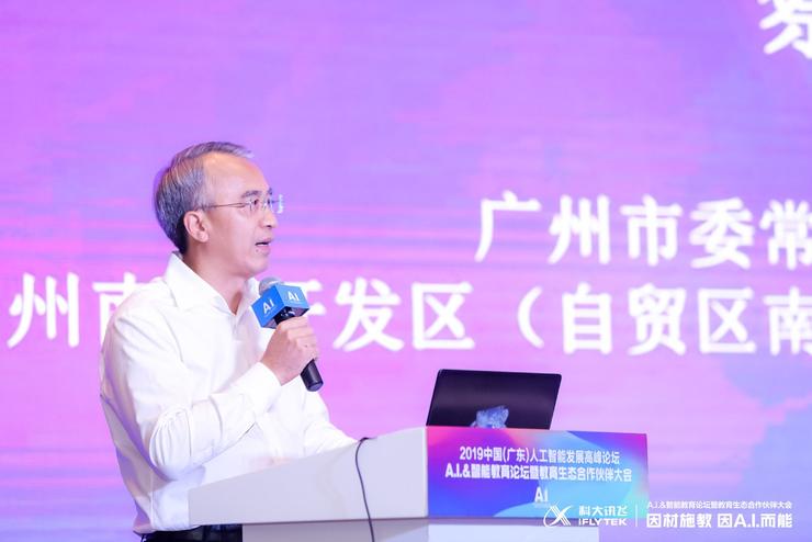 广州市委常委、南沙区委书记蔡朝林在“A.I.&智能教育论坛暨教育生态合作伙伴大会”上致辞 顶层布局:市级智慧教育样板开疆拓土 无论是样板校的打造,还是示范区样板的建设,都缺少不了顶层设计的版图构建。 一直以来,科大讯飞积极参与广东人工智能行业顶层设计。去年7月,广东省人民政府印发的《广东省新一代人工智能发展规划》,明确指出“支持科大讯飞加快建设智能语音国家新一代人工智能开放创新平台”。 在粤港澳大湾区智慧教育的道路上,从来不乏科大讯飞的身影。 2015年,科大讯飞与广州市教育局签订战略合作协议,并携手落实《教育信息化十年发展规划(2011-2020)》,旨在全面提升广州市教育现代化发展水平,通过技术创新把广州打造成为全国一流的“互联网+”智慧教育示范区。 广州市教育局相关负责人表示,在全国众多城市以大规模信息化装备建设推进教育信息化的时期,广州市已经开辟了一条以学生发展为中心的智慧教育之路。今年,广州成功入选2019年度全国“智慧教育示范区”。 如今,广州智慧教育已开花结果、根深叶茂。科大讯飞智慧教育已覆盖广州498所学校,服务师生近8万人,华师附中、广雅中学、省实中学等知名中学均在使用。 同样是在2015年,科大讯飞开启智慧教育的深圳市级样本打造之路。与深圳市人民政府签订战略合作协议后,科大讯飞又陆续与福田区、宝安区、龙华区教育局、大鹏新区、罗湖区均签订战略合作协议。深圳教育云应用也由科大讯飞部署,在深圳市开通教育云帐号的学校,已从初期的12所发展到706所,参与师生达14万人。 截至目前,科大讯飞已在广东全面布局“十城”,陆续与广东省政府、广州、深圳、东莞、佛山、珠海、阳江、河源、惠州、汕尾、梅州等城市签订全面战略合作协议。合作范围覆盖科大讯飞的智慧教育等主赛道业务。 随着《粤港澳大湾区发展规划纲要》的出台,大湾区建设正在加速推进,深入布局粤港澳大湾区智慧教育成为重中之重。 最近,科大讯飞又将智慧教育的神经末梢延至港澳区域,与澳门濠江中学以及香港电讯公司旗下的HKTE公司签署合作协议,加速在粤港澳大湾区智慧教育区域样板的打造。 “粤港澳大湾区给我们带来了非常大的创业机会,因为这里有最好的应用场景、最好的教育医疗产业,而且还汇聚了海内外的高端人才。”科大讯飞高级副总裁杜兰博士笃定认为,“粤港澳大湾区是‘A.I.+应用’最好的试验田”。