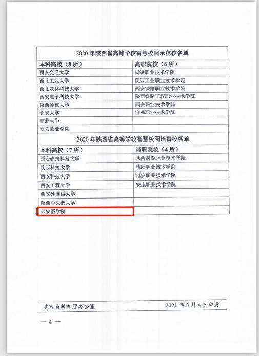 近日,陕西省教育厅发文公布了2020年度陕西省智慧教育示范县(区)、智慧校园示范校和培育校名单(陕教〔2021〕28号),西安医学院入选陕西省高等学校智慧校园培育校。