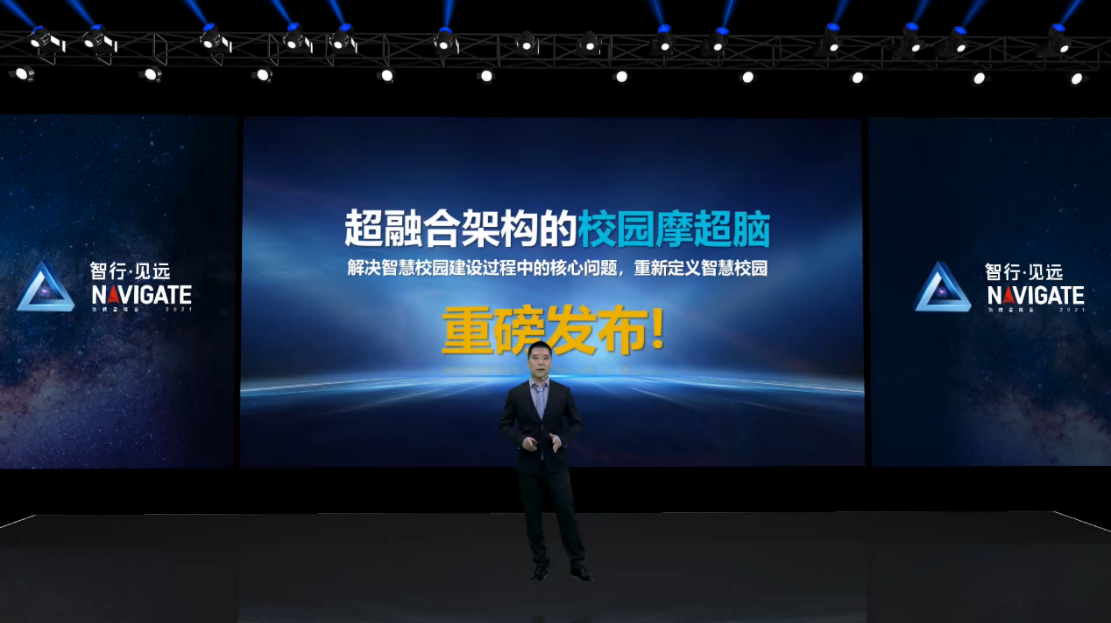 在以“全域智能,共见教育未来”为主题的2021 NAVIGATE领航者峰会教育专题论坛上,H3C重磅发布针对新建校量身定制的校园摩超脑,首次定义了校园中台,引领智慧校园融合创新。