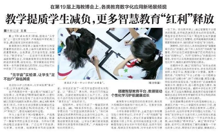 2019年,闵行成功入选首批国家级“智慧教育示范区”创建区,除了深入各校的“闵晓数”智慧笔,闵行还在区域层面构建了区校两级作业系统“闵智作业”。利用“闵智作业”的数据分析模型,学校可以实现数据驱动的差异化教学、个性化学习、精准化教研和智能化服务。