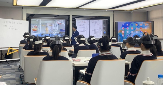 作为上海市首个5G+智慧高中,卢湾高级中学在2020年打造了一间全息教室,配备了一整套专用的全息互动设备,为师生们提供远程互动教学环境,广泛应用于思政课、化学课、生物课、地理课等学科的创新课堂。学校还打造了一间元宇宙虚拟现实实验室,以“煤化工”课为例,学生们不仅能全流程、沉浸式地体验煤化工生产工艺,还能在不进行危险实验的前提下身临其境地完成“溴苯反应”实验的学习。
